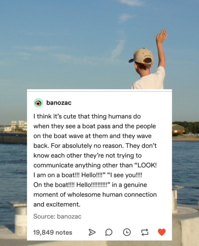 I love, love the Farmer Hello. I’m a friendly sort and so I dig it for that reason, of course; but what I really like is that it’s an acknowledgement that two strangers exist in the exact same place in the exact same moment on a giant planet that is billions of years old. Which I don’t think we think about very often.