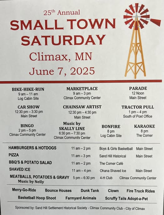 Climax Small Town Saturday: June 7 in Climax, MN (North Dakota-adjacent)