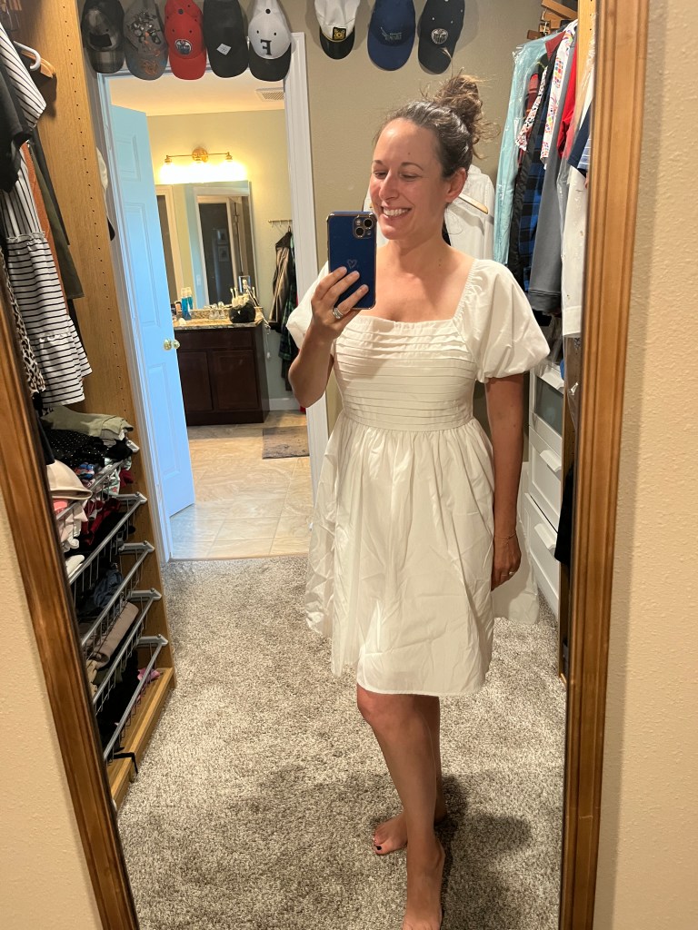 Kyle bought me this dress because I think he thinks I am younger than I am – but that’s okay because I’ve received a million compliments on it. I’ve worn it once with a denim jacket and that looked less princess-y. Here’s the exact DRESS, here’s something really similar but in a variety of colors, and here’s one in the spirit of things that’s probably better for us olds.